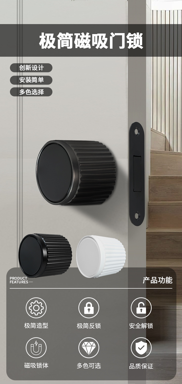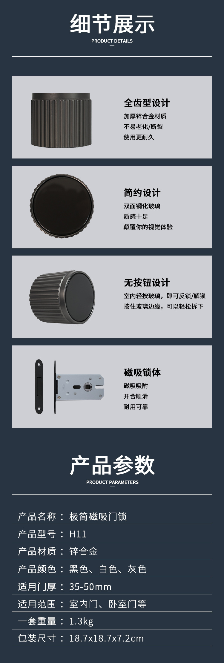 H11 极简球形两面生态门磁吸锁