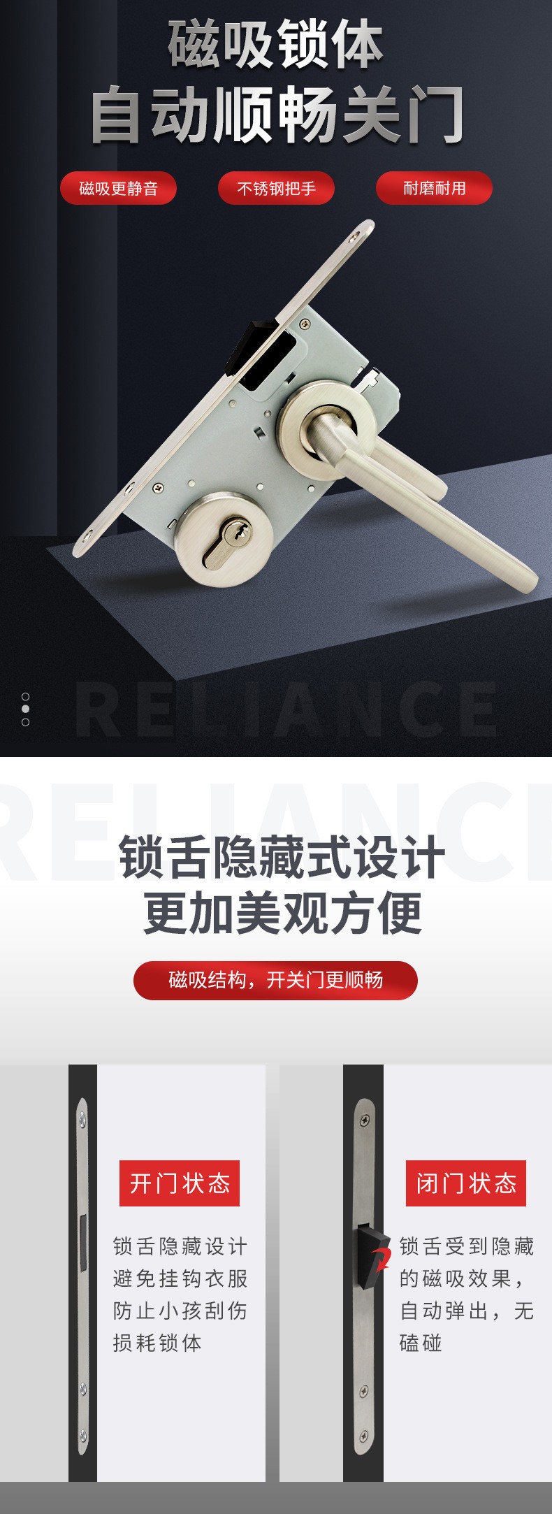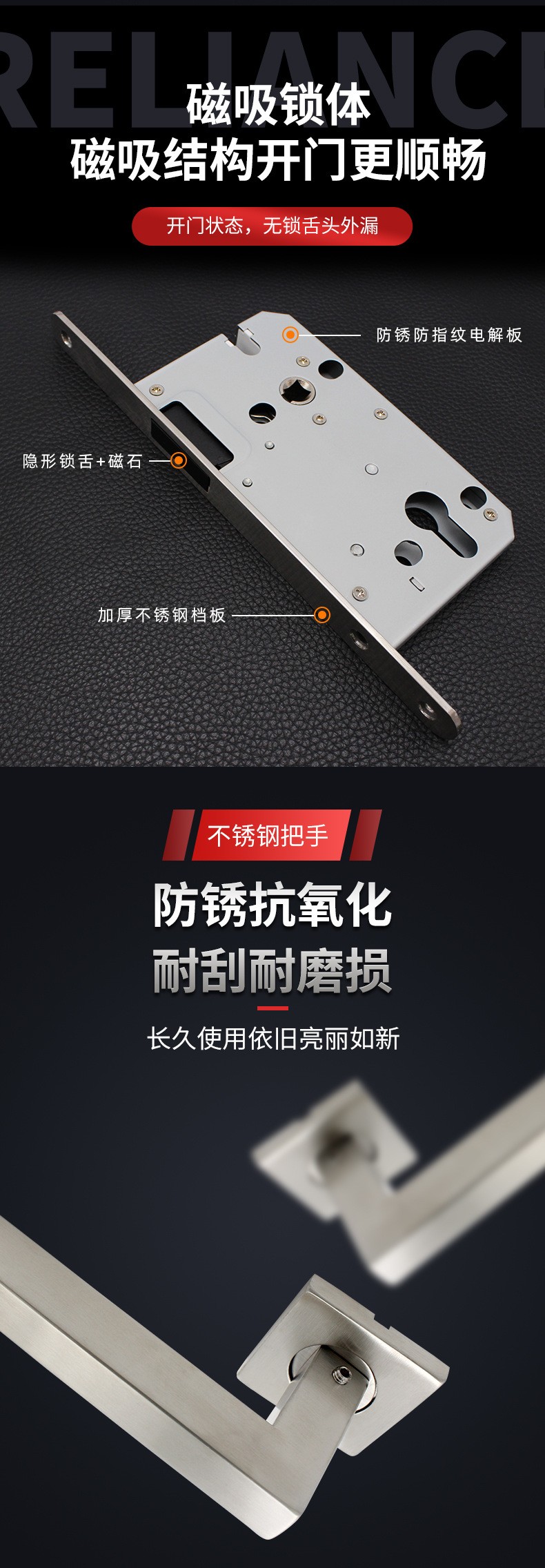 RST-07 不锈钢304欧式室内门磁吸静音分体门锁